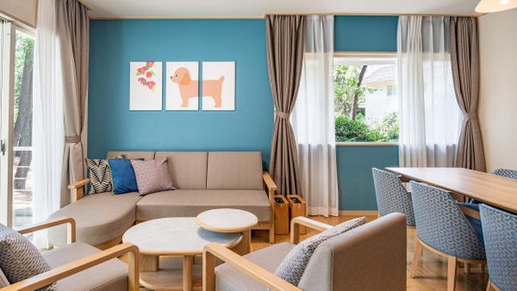 度假村周围有很多地方可以和宠物一起玩耍!步行10分钟即可到达最近的海滩——日光海滩(Sun Beach Hitotsuba),带您的宠物去散步♪ 广袤的Black Pine Forest阳光透过树叶洒下,散发着淡淡的木香,富含植物杀菌素,具有缓解疲劳、活化细胞、放松身心的功效。
