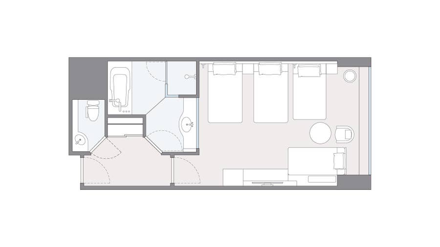 以宫崎的蓝天和碧海为形象的空间设计原封不动,撤去了商务桌,重新配置了睡眠室和单人沙发,更增添了度假风格。