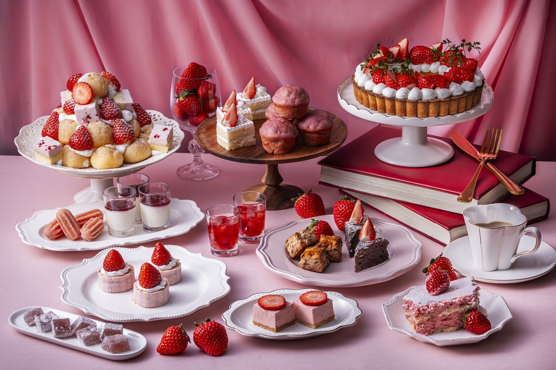 ガーデンビュッフェ「パインテラス」をはじめとする、ホテル内すべてのレストラン&バーにて、いちごを使用したメニューをご提供。デザートはもちろん、料理やカクテルなど、多彩なスタイルで旬のいちごをご堪能いただけます。
