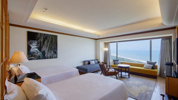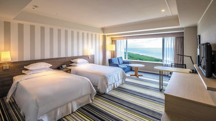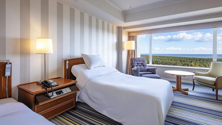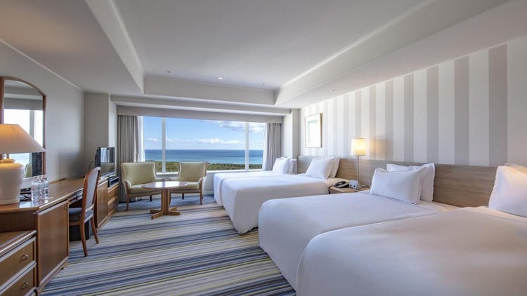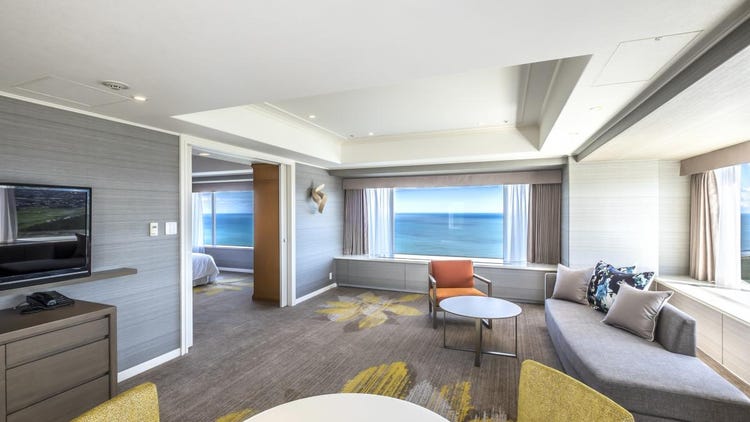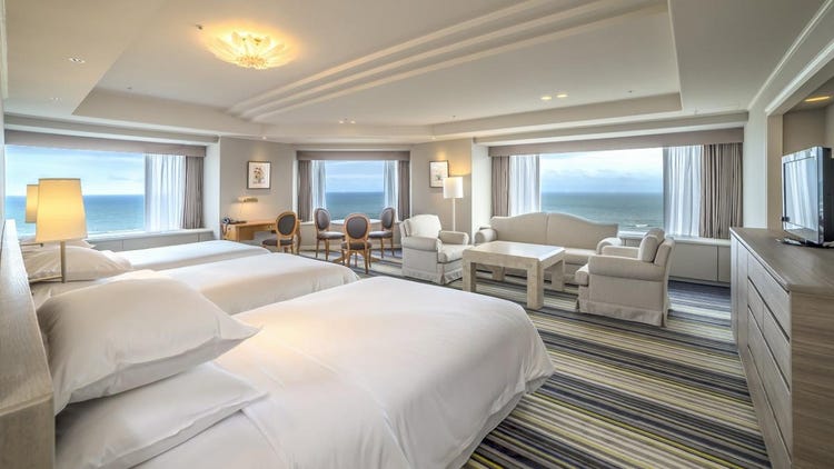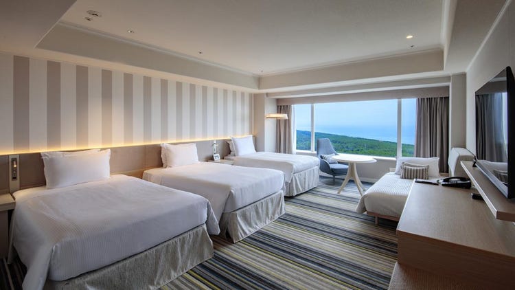 以宫崎的蓝天与碧海为意象设计的明亮客房,所有客房均为海景房,面积宽敞达50平方米,可容纳3人入住。