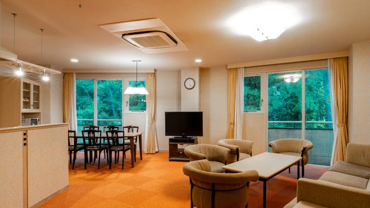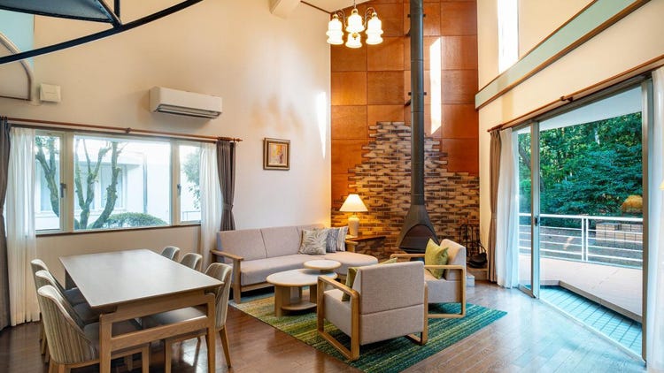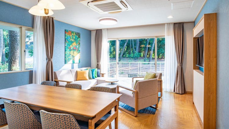 总面积达117平方米,空间十分宽敞!这是可让家人或同伴悠闲共度时光、拥有别墅般感受的小木屋式客房。