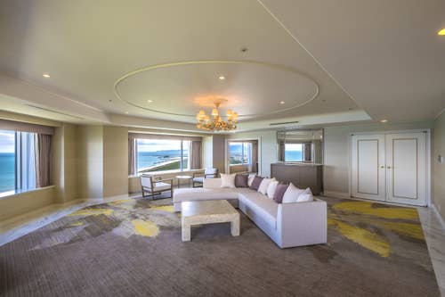 以蓝天与碧海为意象设计的客房,请尽情享受眼前开阔展开的海景风光。宽敞达50平方米的空间,让您能够悠闲惬意地度过美好时光。