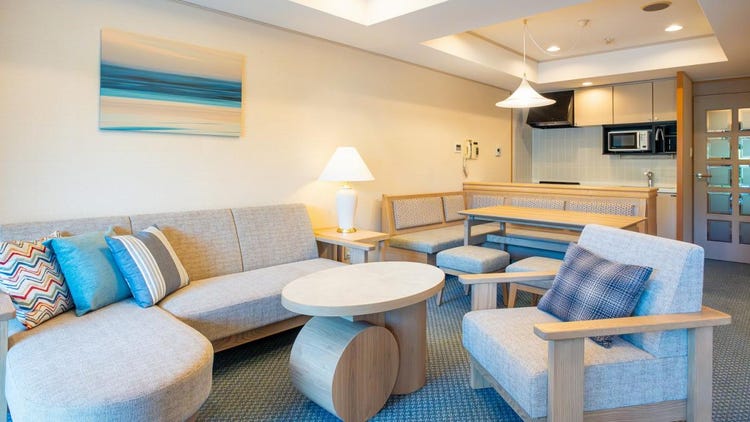 作为可供4人使用的客房完成焕新升级!在保留以碧海为意象的设计风格的同时,进一步融入了更加浓厚的度假氛围。