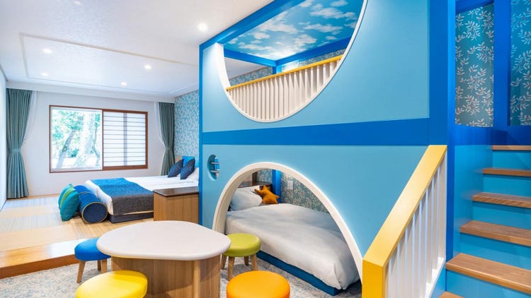 在家庭型客房中,全新诞生了色彩缤纷的儿童房!这是一间拥有让孩子们感到开心的室内设计的小木屋式客房♪