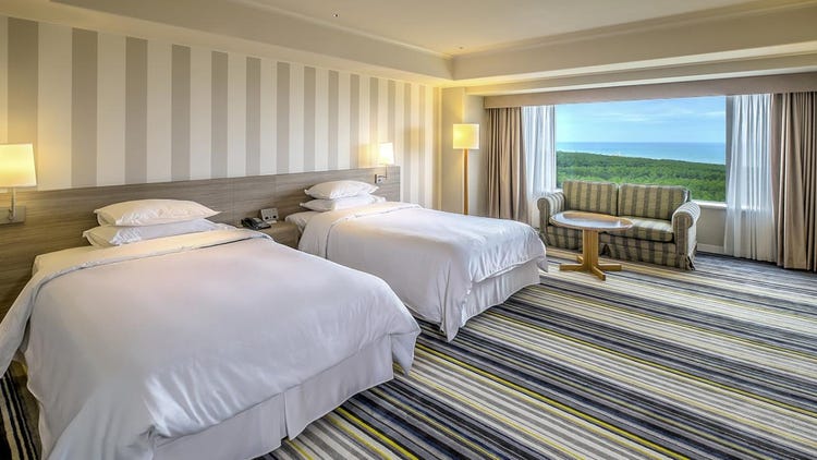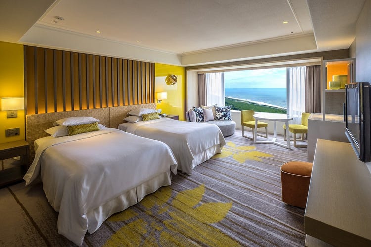以蓝天与碧海为意象设计的客房,请尽情欣赏眼前开阔展开的海洋景观。宽敞达50平方米的空间,即使三位宾客也能舒适从容地度过时光。