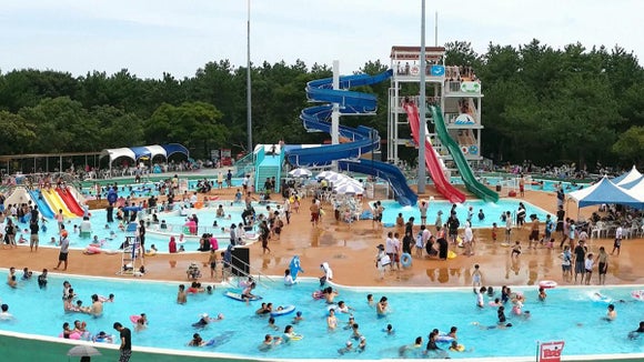 暑假,园内1周200米的流动游泳池开放。流动游泳池、儿童游泳池、幼儿游泳池3个游泳池之外,还有3台水滑梯、小孩子用的滑梯、喷水区等,请一家人尽情享受。