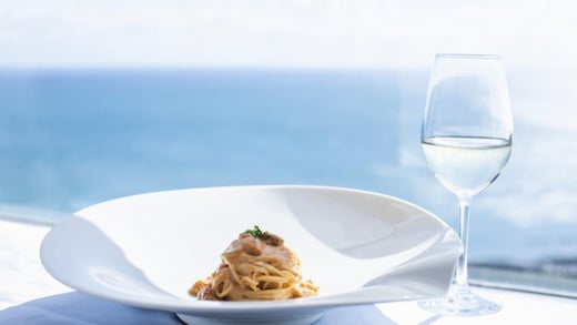 在能看见海的咖啡馆吃午餐