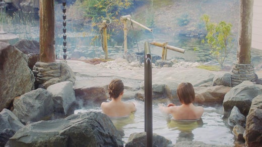 在温泉放松
