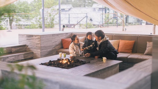 在“ Fireside Living Area”,您可以享用用宫崎市当地“中原咖啡工厂”咖啡豆制作的免费咖啡,以及在摇曳的篝火上烤制的棉花糖。在这片被松林环绕的露天空间,与家人共度轻松惬意的度假时光。