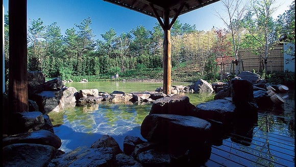 从浴池看到的风景如同绵津见的世界,露天浴池的前面有水池,可以悠闲地放松心情。